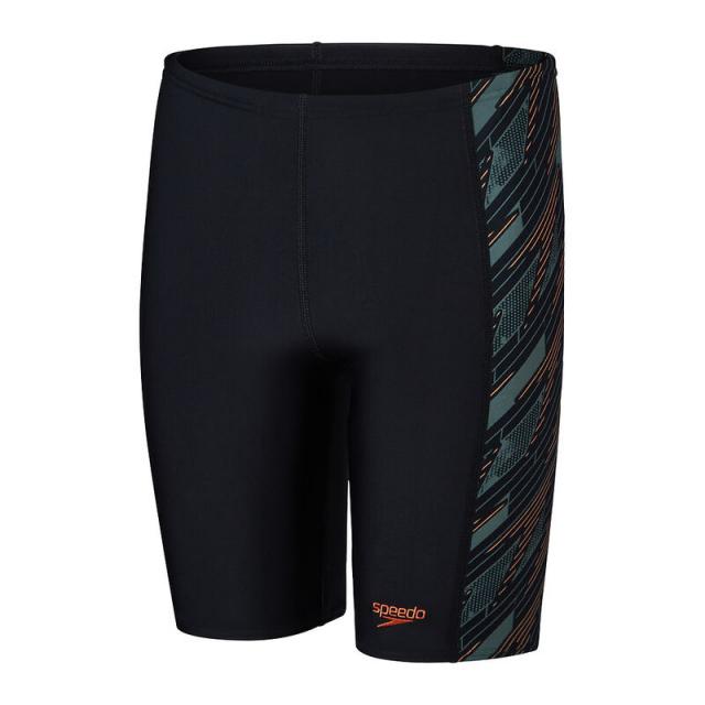 Paying homage to our legacy graphics, this sporty black Jammer showcases an evolutionary HyperBoom graphic in a khaki/orange combo side panel print. Designed with a V-panel liner for comfort and modesty, the jammer includes an internal drawcord to allow young swimmers to adjust the fit. A great choice for frequent swim sessions, the EnduraFlex fabric offers higher chlorine resistance than standard swimwear fabrics and fits like new for longer with CREORA HighClo. In addition, nylon yarns in the EnduraFlex fabric are made from 100% pre-consumer waste, such as waste fabric from factories. Secure Fit – internal drawcord allows you to adjust the fit FRONT SEAM GUSSET LINING EnduraFlex
